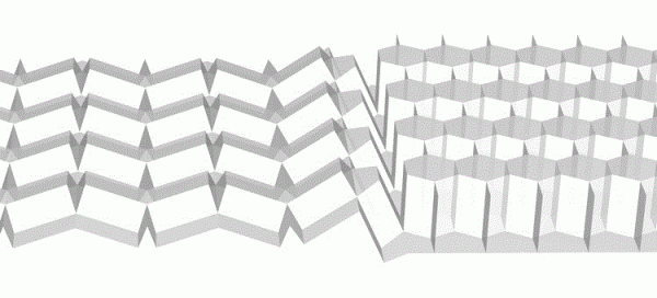 sagt Dr.-Ing. Jochen Pflug, Geschäftsführer der ThermHex Waben GmbH und ebenfalls Organisator der Konferenz. Sein Unternehmen stellte im Rahmen der Tagung erstmals das neue Produkt »ThermHexWAVY« vor, einen thermoplastischen Wabenkern mit wellenförmiger Zellwandgeometrie, der deutliche Steigerungen bei Druckfestigkeit möglich macht. Die besondere Geometrie ist mit jedem thermoplastischen Polymer auf den bestehenden ThermHex Produktionslinien herstellbar.